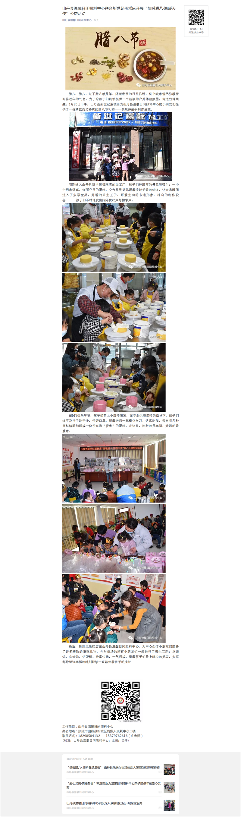 山丹县温馨日间照料中心联合新世纪蛋糕店开展“情暖腊八·温暖天使”公益活动