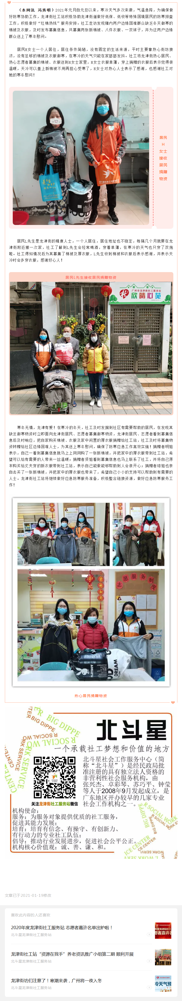 龙津街社工站募集御寒物资为社区边缘困难人士送上寒冬慰问!