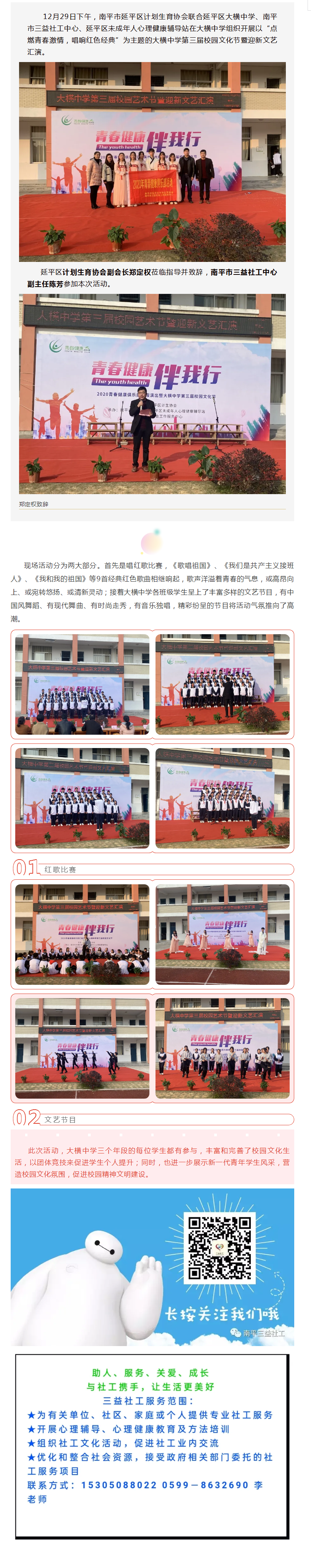 点燃青春激情,唱响红色经典——南平市三益社工参与大横中学举办第三届校园文化节暨迎新文艺汇演
