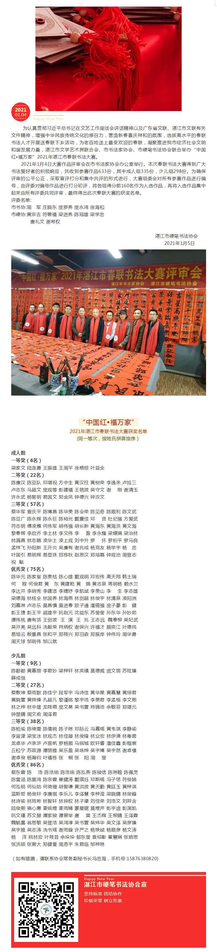 “中国红?福万家”2021年湛江市春联书法大赛评审结果揭晓