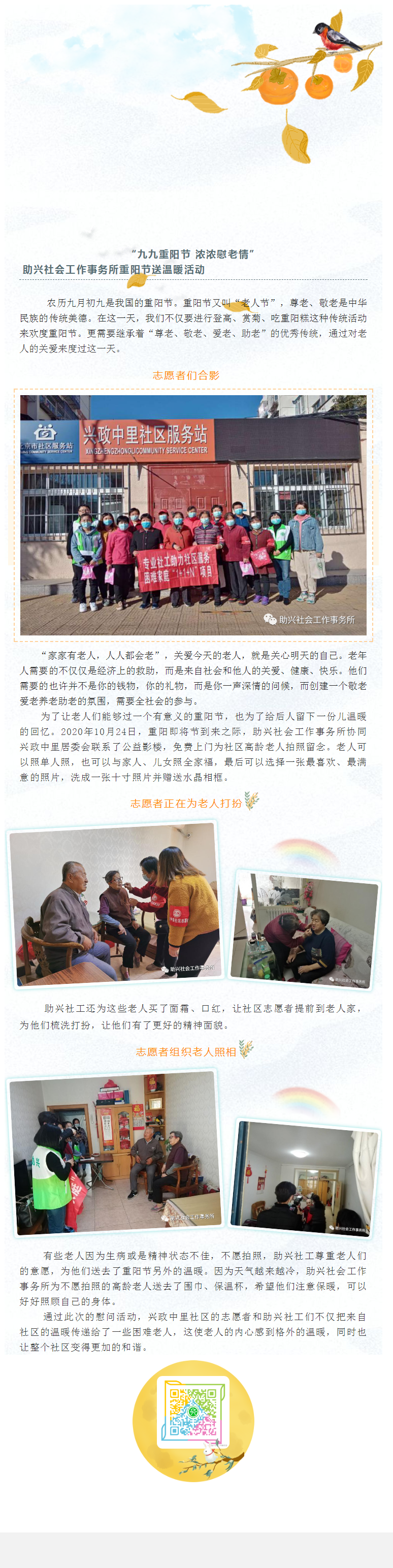助兴社工所组织“九九重阳节,浓浓慰老情”的送温暖活动