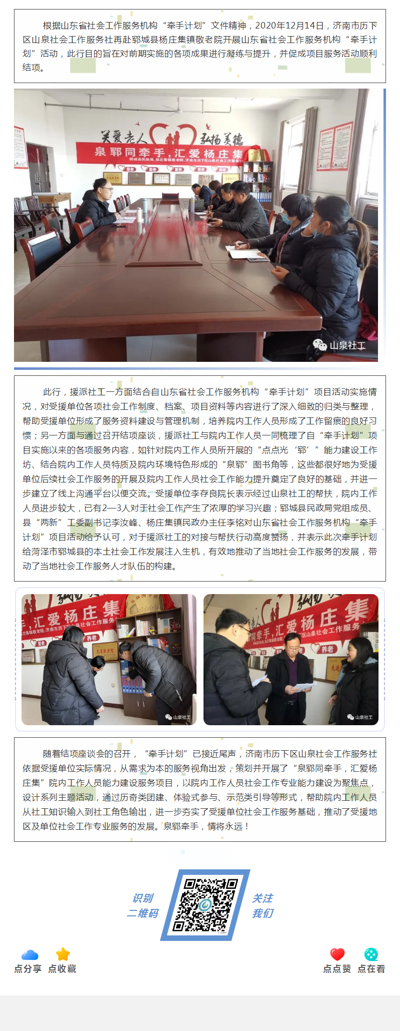 泉郓牵手,情将永远——“泉郓同牵手,汇爱杨庄集”项目顺利结项