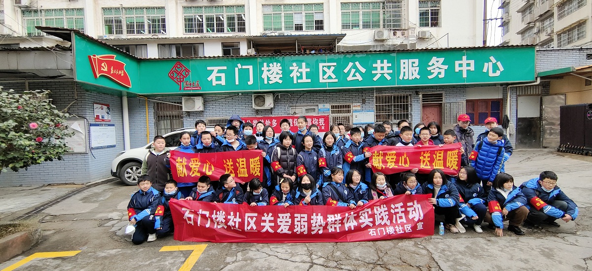 2021年2月2日上午,桔子洲街道石门楼社区组织了40余名麓山外国语实验中学麓山班C2001班的学生开展了一场冬日送温暖的慰问活动。