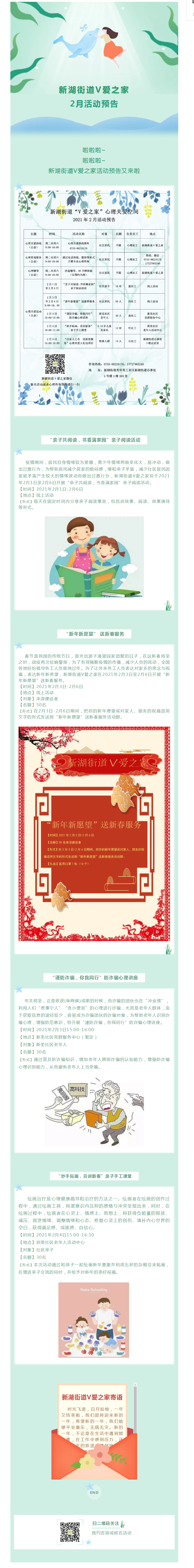 新湖街道V爱之家2月活动预告
