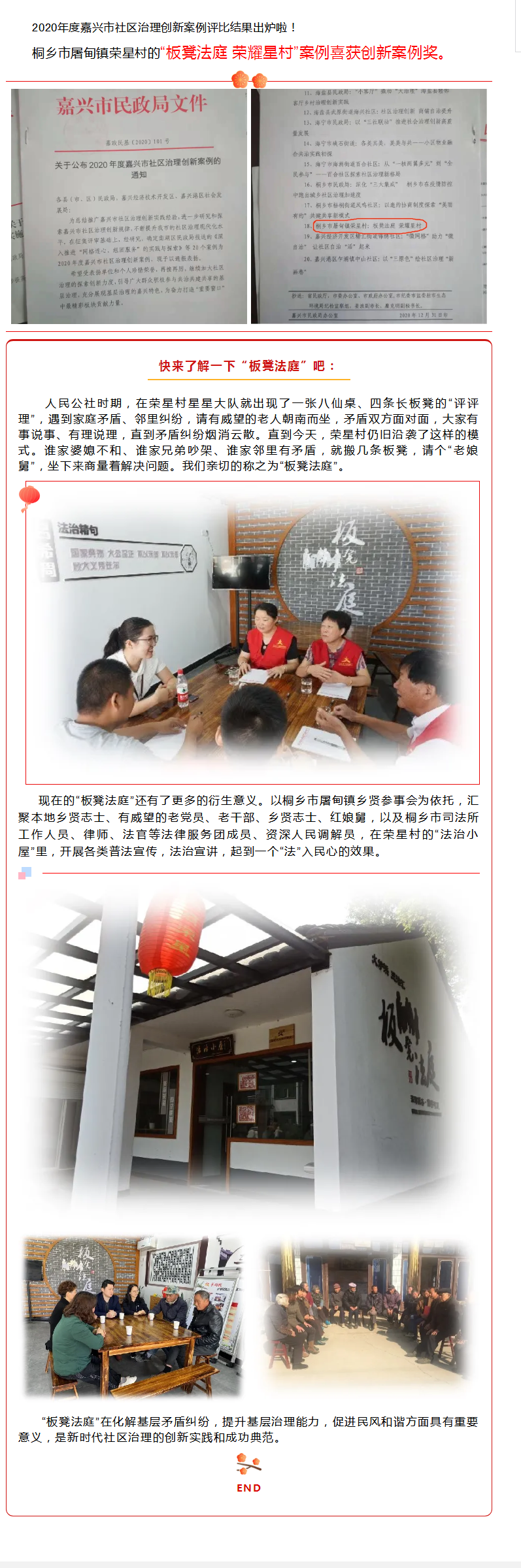 【屠甸·培育】 喜报!“板凳法庭 荣耀星村” 荣获嘉兴市社区治理创新案例