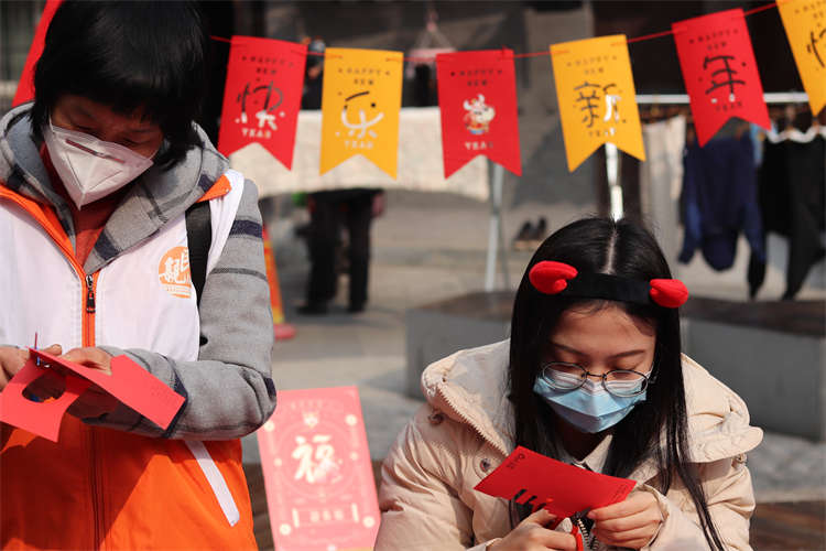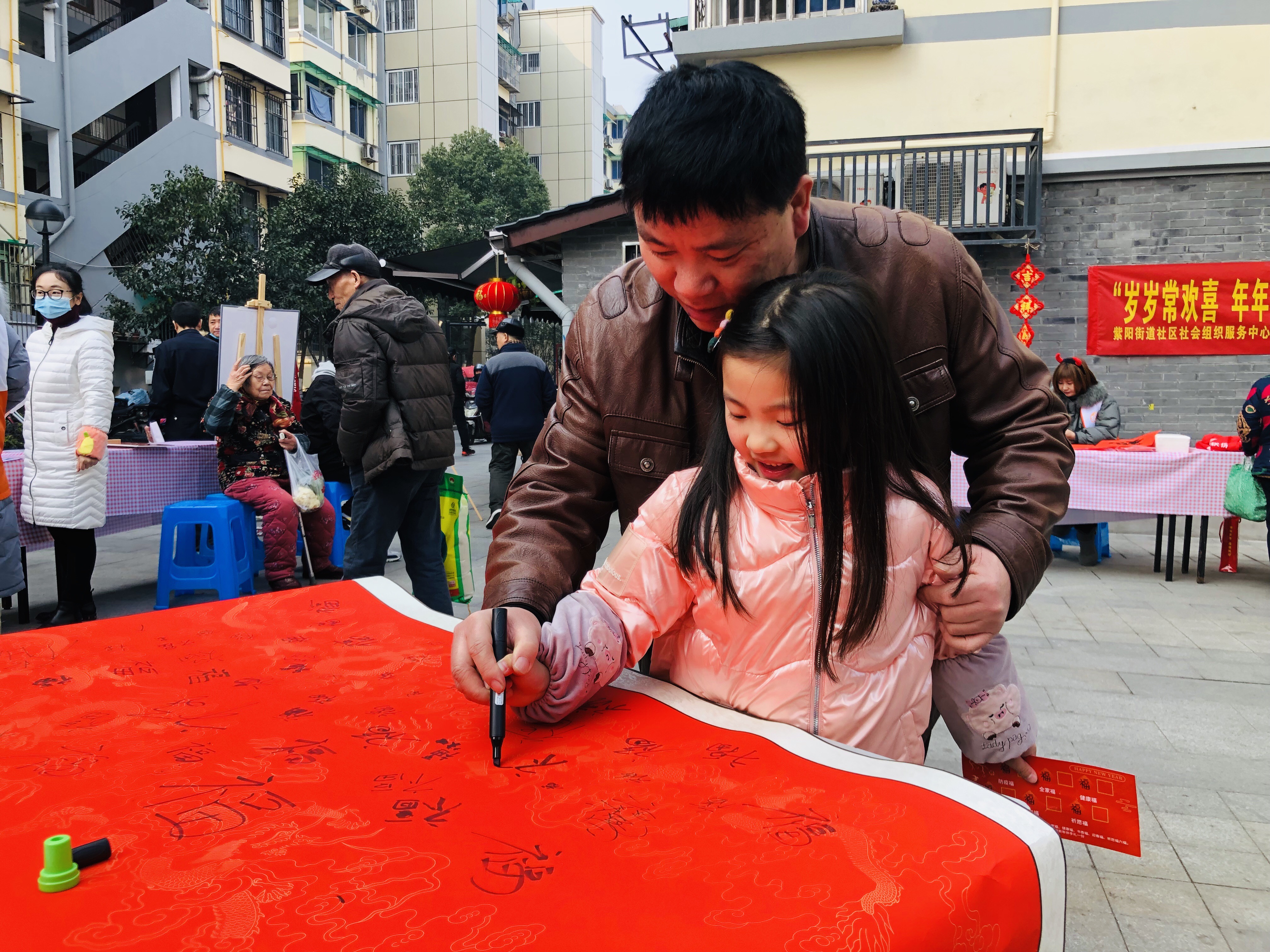 游园会以“岁岁常欢喜,年年皆胜意”为主题,设有“防疫福”、“全家福”、“健康福”、“书香福”、“迎春福”“祈愿福”、“齐福有礼”文化互动区,让步行街上洋溢起了浓浓的年味。在“防疫福”签到区,居民们戴着口罩排队,经过体温检测有序入场;在“健康福”摊位,居民跟随健康达人亲民邵阿姨学习“抖空竹”,祝福新年健健康康;在“全家福”区,居民们写下花式“福”,感慨道“今天小区很热闹,很有过年的氛围。”;人气爆棚的“书香福”请来了亲民书法老师金锡春叔叔现场为居民们书写春联,为大家送上了新春祝福;在“迎春福”摊位吴阿姨拿着孙子现场做的灯笼笑呵呵地评价“老少皆宜的活动,非常有趣”;在“祈愿福”区,社区居民们在祈愿卡上写下新年祝语,系上红绳,祝愿新年万事胜意;在“齐福有礼”区,居民朋友们一同为自己的新春添红彩,收获了满满的福气和开心,纷纷表示“感谢社区和亲民社会组织开展这类迎春活动,我们觉得很开心,有的玩又有礼品,还体验到了新年的年味!”