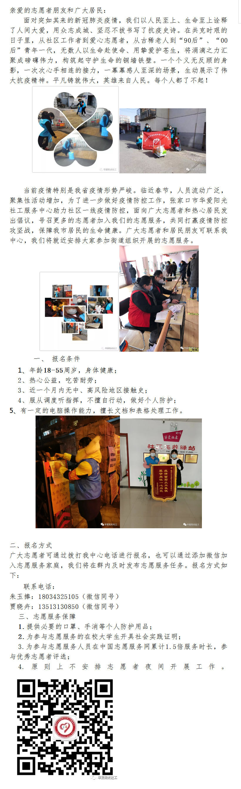 张家口市华爱阳光社会工作服务中心关于招募疫情防控志愿者的倡议书