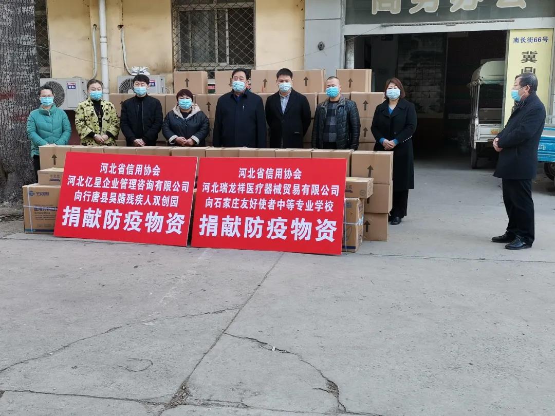 2021年2月7日,河北省星光慈善基金会、河北省信用协会携手爱心企业河北亿星企业咨询管理有限公司及河北瑞隆祥医疗器械贸易有限公司举行了爱心捐赠仪式,分别对石家庄市行唐县残疾人双创园及龙和石家庄友好使者公益艺校捐赠近5万元的防疫物资,让这些特殊群体感受到社会大家庭的温暖和关爱,此次的防疫物资均由两家爱心企业捐赠。