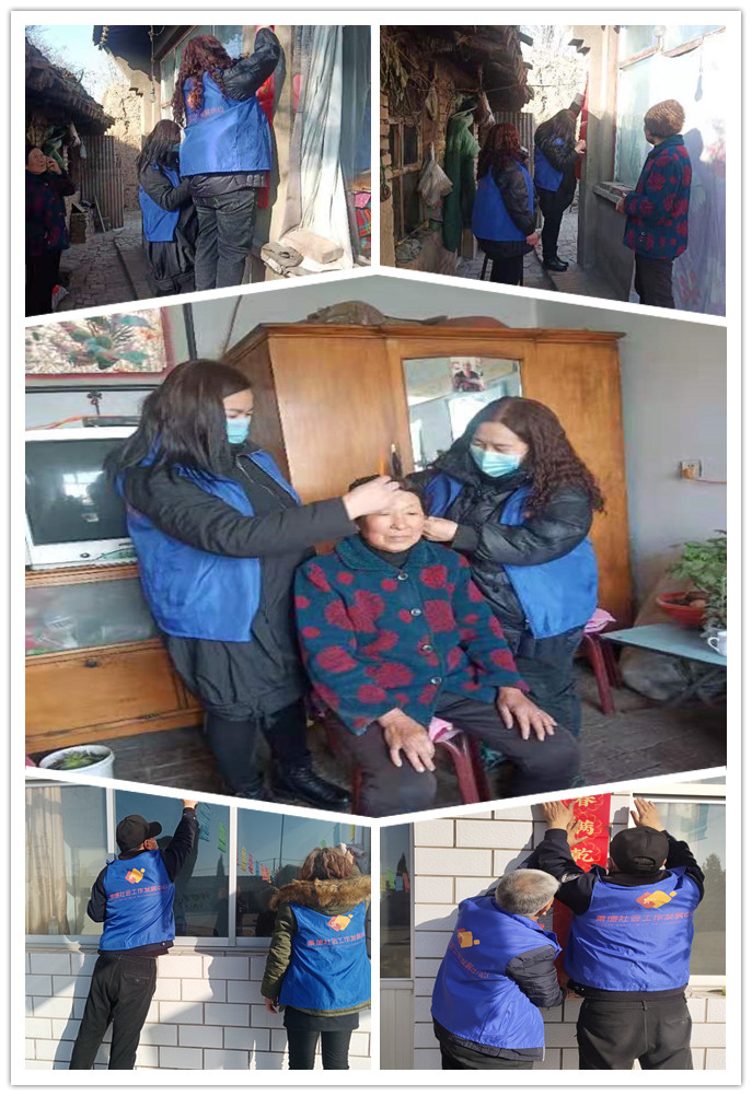 2月8日,在驻村社工的协助下,由老年协会志愿者刘库组织,老年协会和妇女协会的15名志愿者为本村的留守老人和空巢老人开展打扫卫生、贴春联、理发服务,协助驻村社工和驻村工作队发放救助物资,开展防控疫情等。今年受疫情影响,部分外出务工人员选择就地过年,无法回家过年,空巢和留守老人遇到了多种困难,自组织的志愿者响应荷花基金的号召,为困难老人开展各种形式的服务,想老人所想、助老人所困,只为让老人过个幸福、祥和、安心的春节。