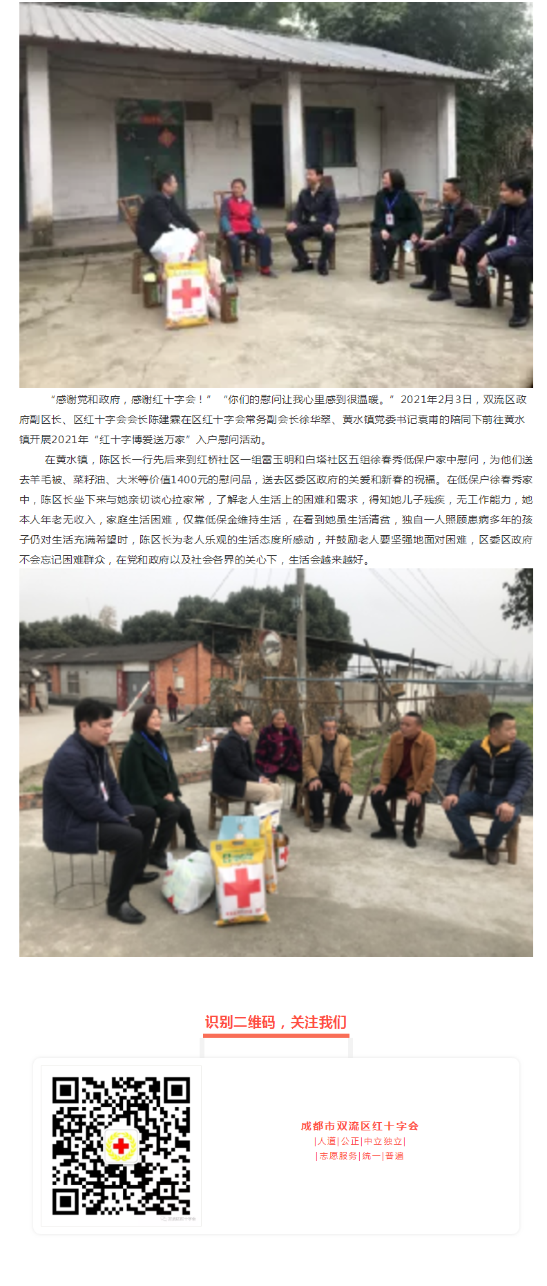 双流区政府副区长、区红十字会会长陈建霖率队开展2021年红十字“博爱送万家”入户慰问活动