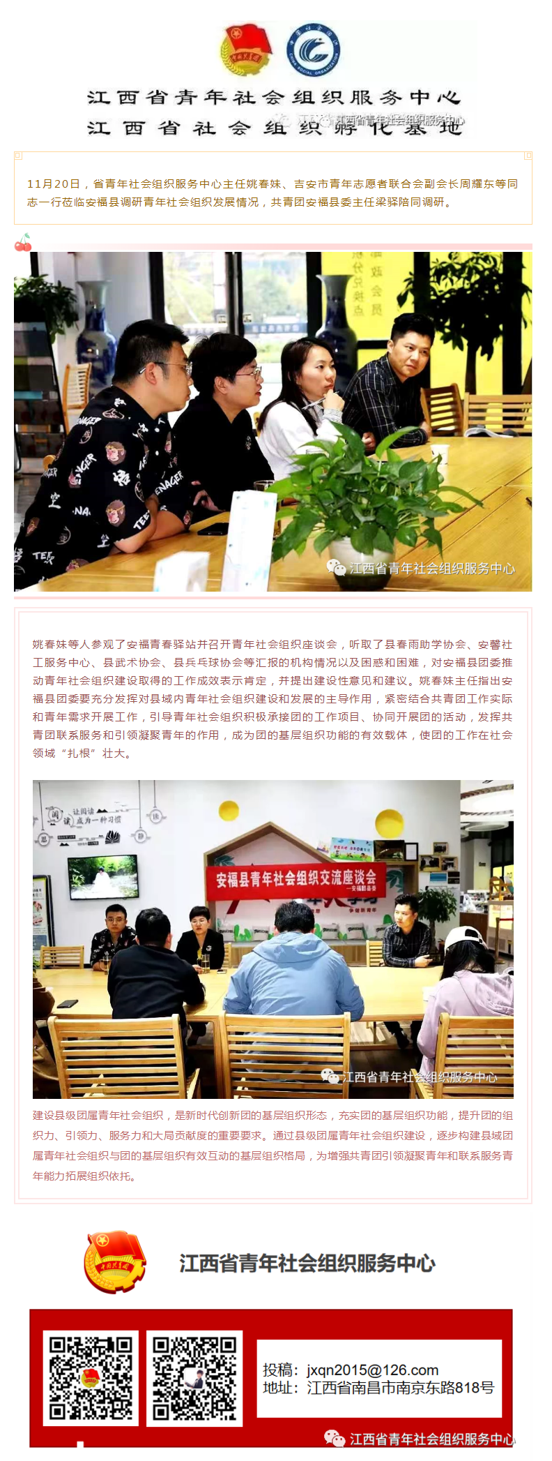 省青服中心主任姚春妹一行莅临安福县调研青年社会组织发展情况