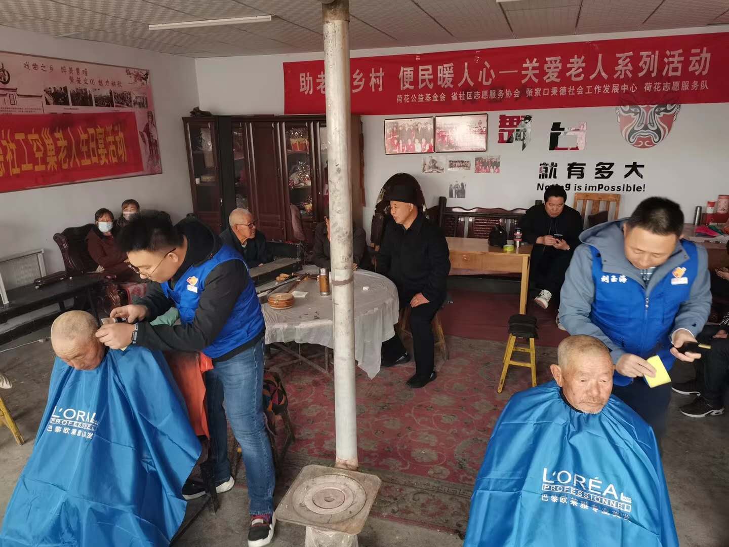 二月二一大早,秉德社会工作发展中心的驻村社工组织志愿者自带理发工具在曹疃村老年活动室里为该村的空巢老人义务理发。在曹疃村妇女协会的协助下,大家互相转告,一会儿功夫就聚集了不少等待理发的老人,社工志愿者耐心的为每一位需要理发的老人理了发。虽然社工志愿者都是业余的理发手艺,但老人们也非常满足,老人们开心的说:“一把年纪了,也凑个好日子,一起龙抬头啊。”