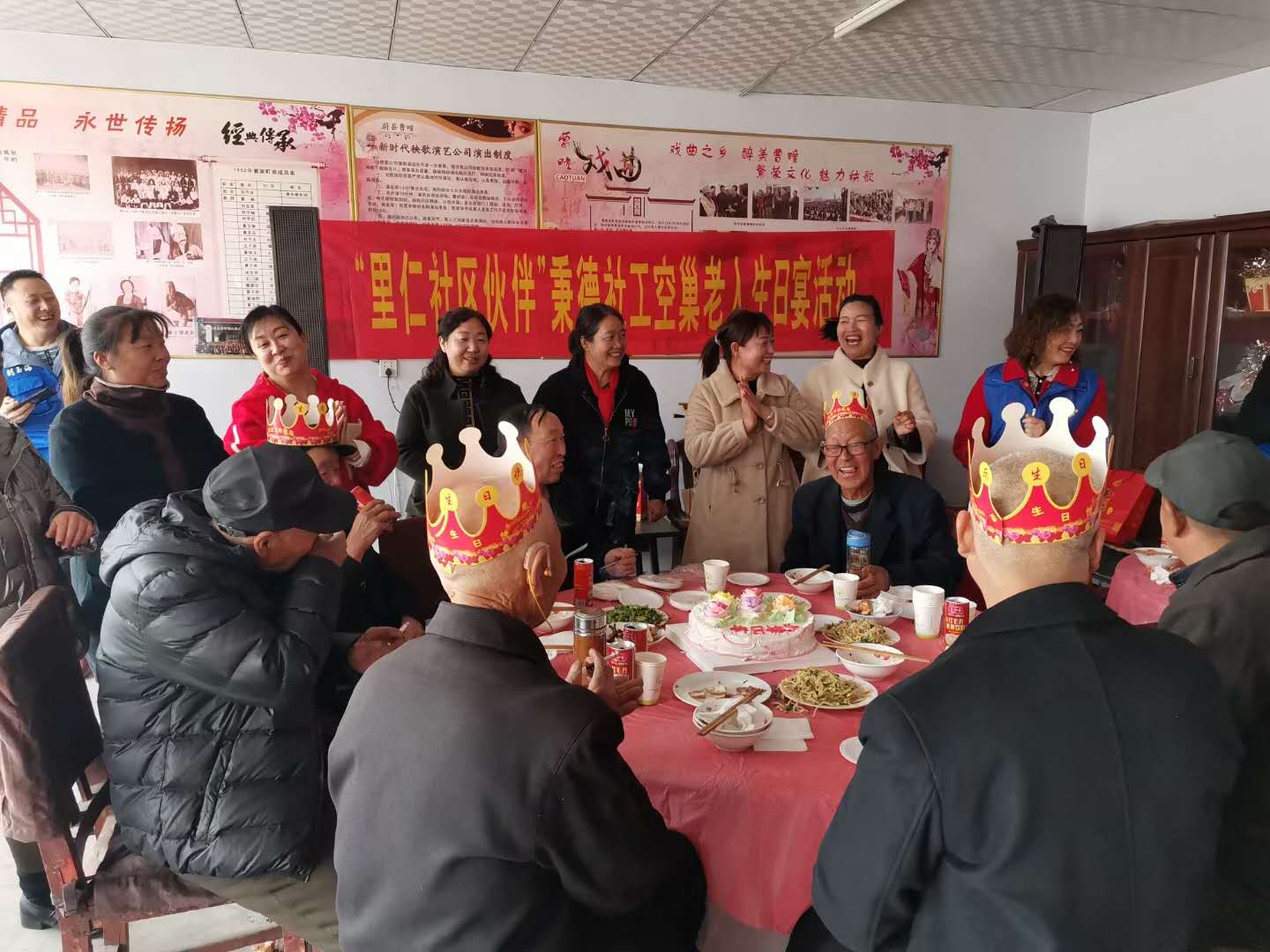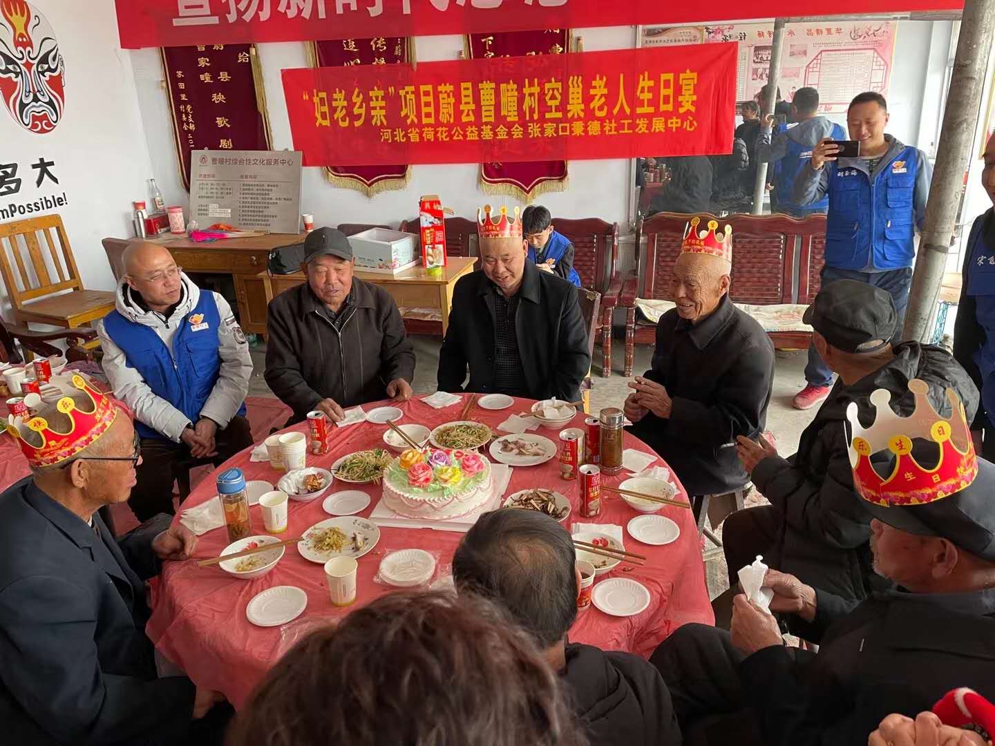 另一边,社工组织村里老年协会的志愿者为村中四位本月过生日的老人准备生日宴席。中午,所有志愿者在老年活动中心为老人们庆生。社工志愿者不仅准备了可口的午餐和生日蛋糕,席间妇女协会的志愿者和驻村社工还为老人们唱起了《生日快乐歌》,老人们都乐的合不拢嘴,幸福感油然而生,这也是驻村社工入驻本村后,组织的第四场空巢老人生日宴活动。