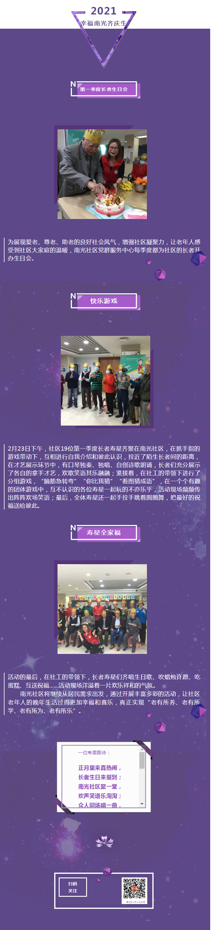 幸福南光齐庆生 --南光社区第一季度长者生日会