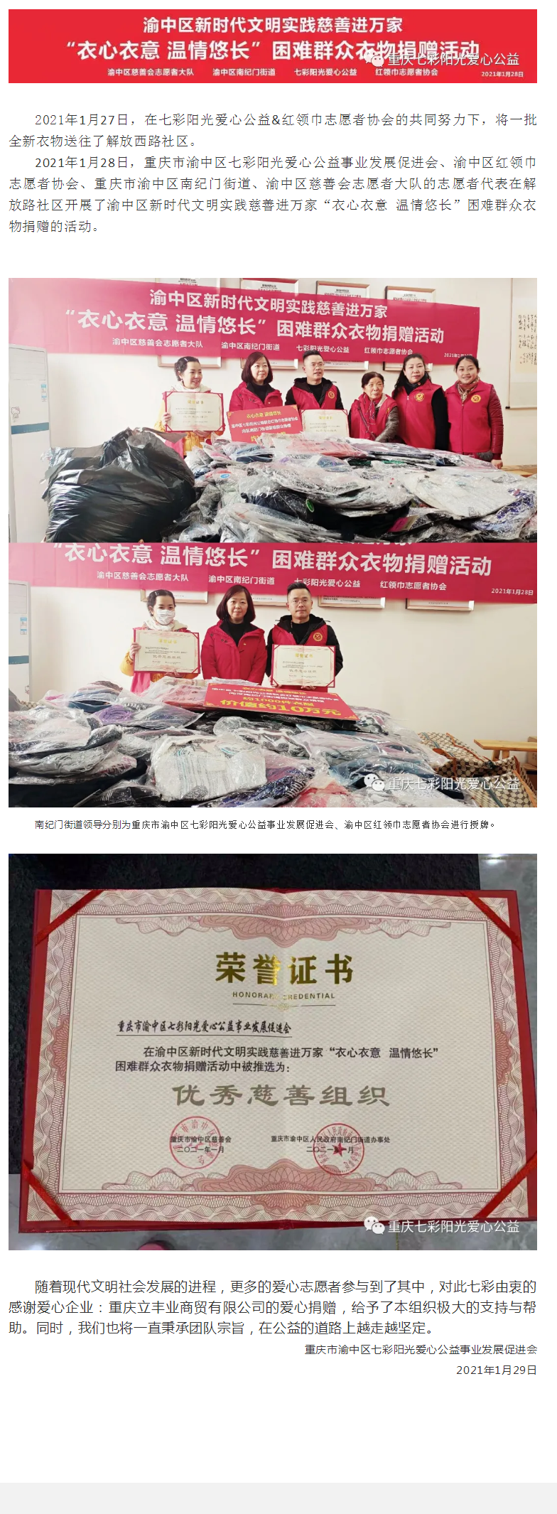 来源:作者:重庆市渝中区七彩阳光爱心公益事业发展促进会时间:2021-03-18 18:47:07浏览:212次