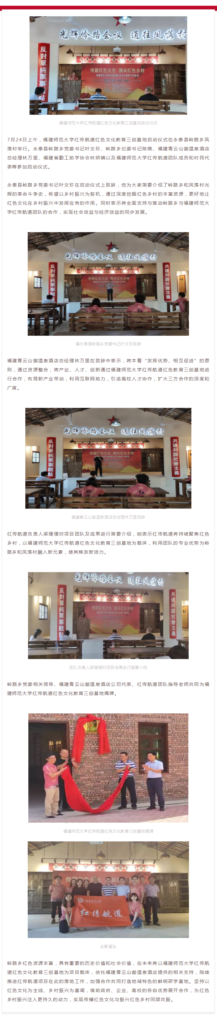 传播红色文化,振兴红色乡村 ——福建师范大学红传航道红色文化教育三创基地正式启动