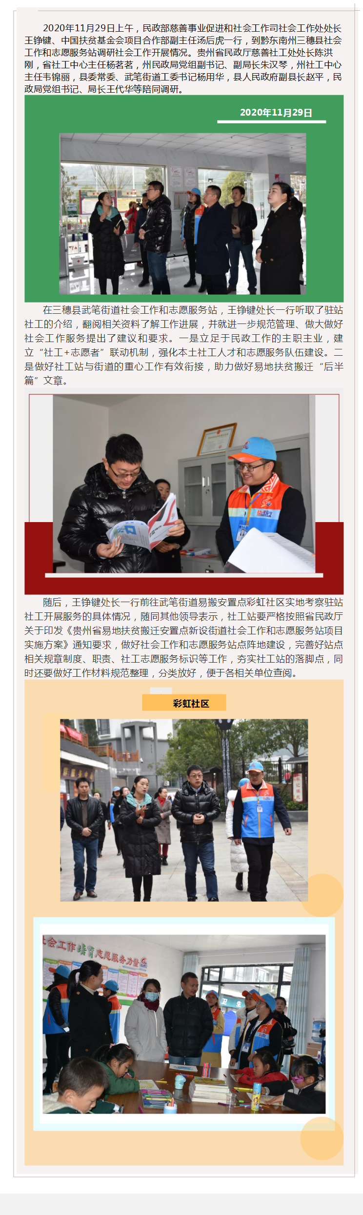 民政部慈善事业促进和社会工作司王铮键处长一行到三穗县社会工作和志愿服务站调研