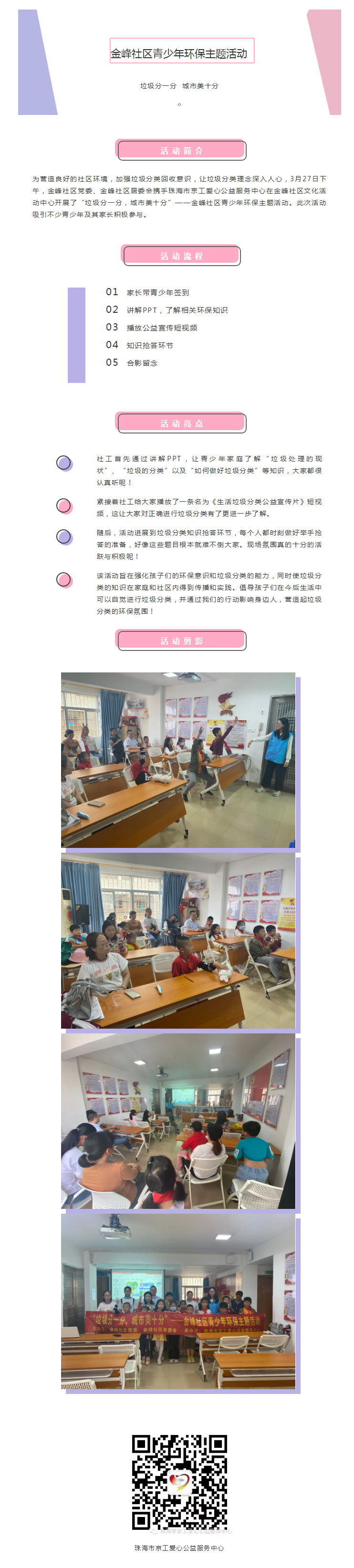 “垃圾分一分,城市美十分”——金峰社区青少年环保主题活动