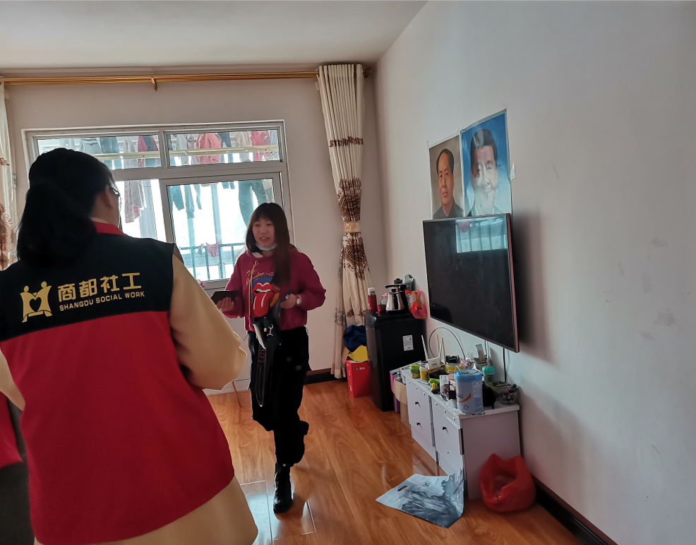 社工根据受捐助者的需求对收集到的衣服进行整理、分类,将每件衣服叠放整齐,进行筛选装袋。最后商都社工通过入户这种途径,将衣服捐赠给有需要的家庭。