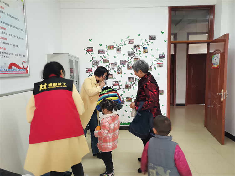 社工根据接受捐赠对象需求信息发起“岂曰无衣,与子同袍”捐衣倡议,通过微信群、朋友圈等渠道号召居民捐赠自己闲置旧衣。社区以及周边居民积极响应,部分居民直接送到商都社工工作站,另一部分居民则联系社工,预约时间让社工帮忙捐赠。社区居民邵阿姨说:“你们这活动真好呀,解决了我的难题。党的政策好,使我们搬离穷山沟,生活越来越好。孙子蹭蹭往上长,衣服没咋穿就小了,扔了可惜,收拾吧又没地方收拾,家里弄得乱糟糟的,通过你们这活动可帮了我大忙。”