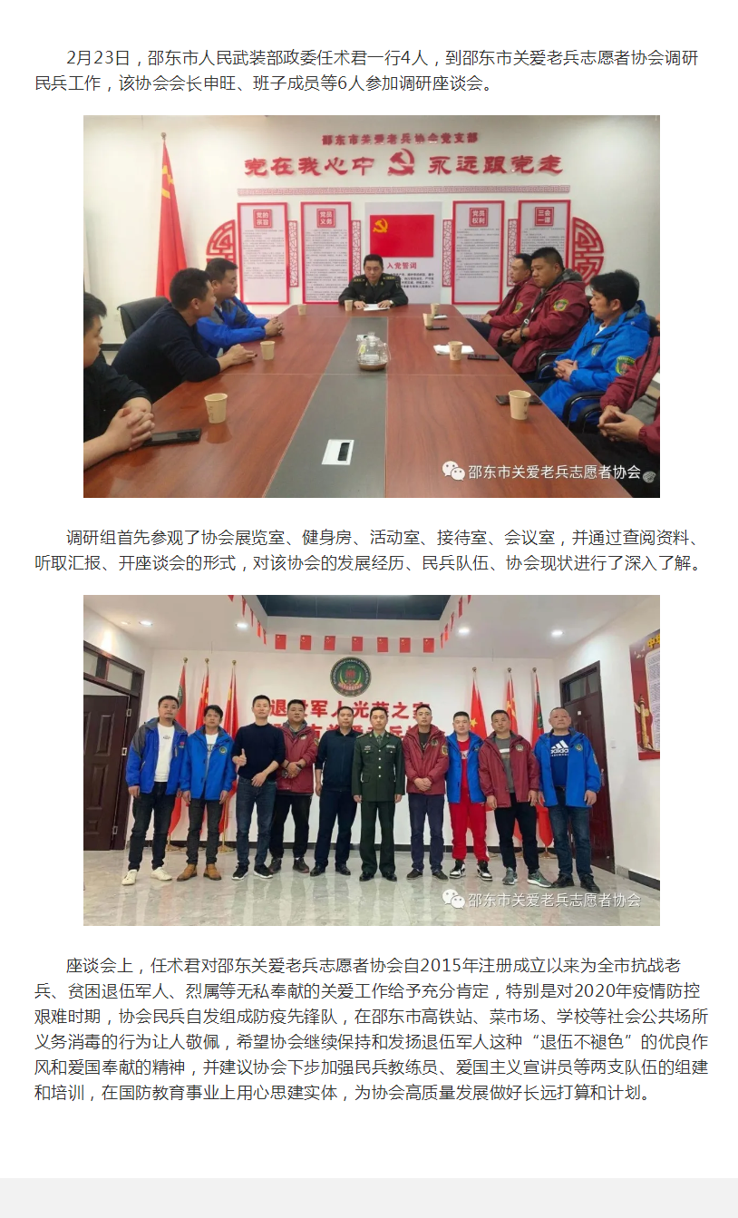 邵东市人武部到邵东市关爱老兵志愿者协会调研民兵工作