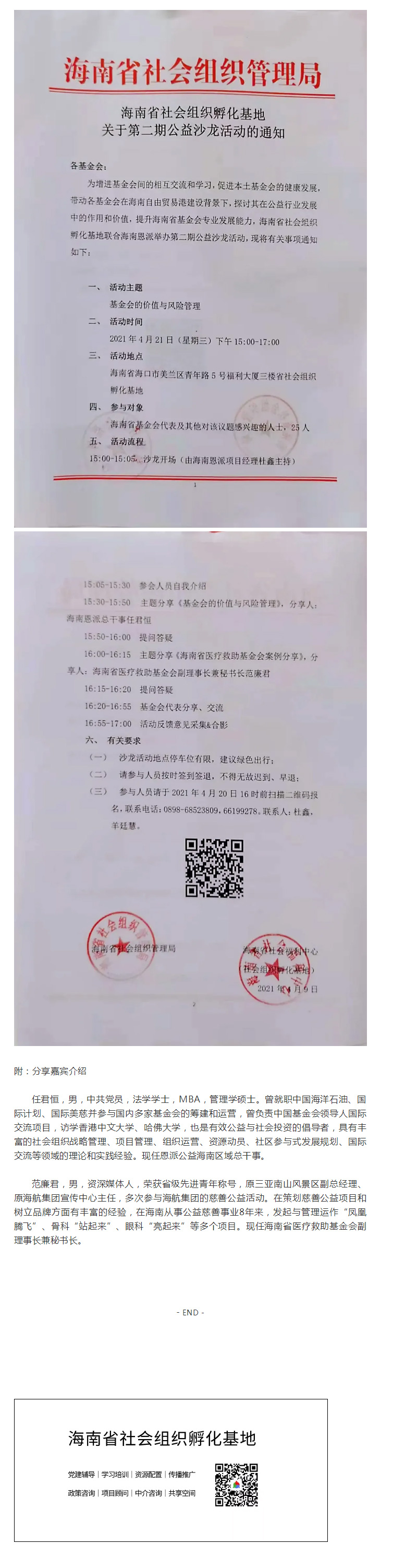 海南省社会组织孵化基地关于第二期公益沙龙活动的通知