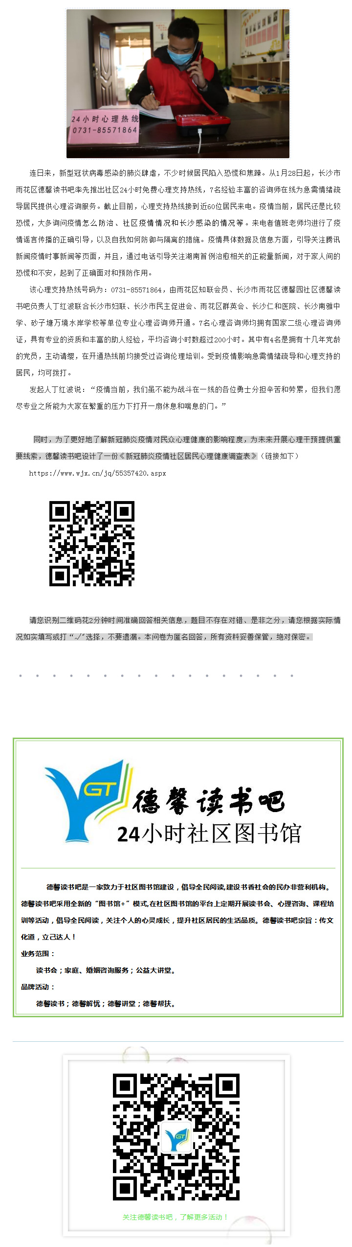 疫情带来恐慌和焦躁?长沙首条疫情防控社区24小时心理支持热线开通