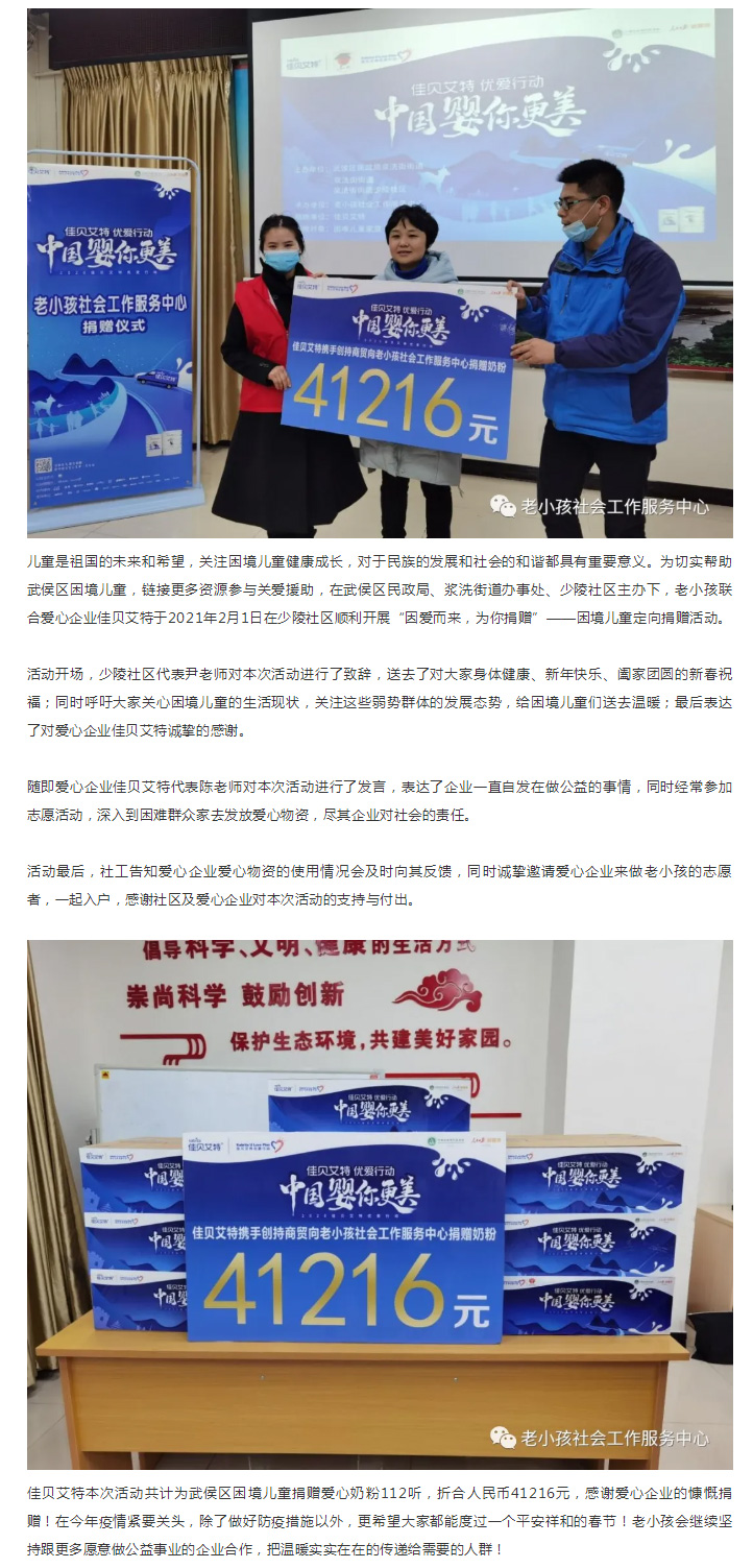 “因爱而来,为你捐赠”——佳贝艾特困境儿童定向捐赠活动