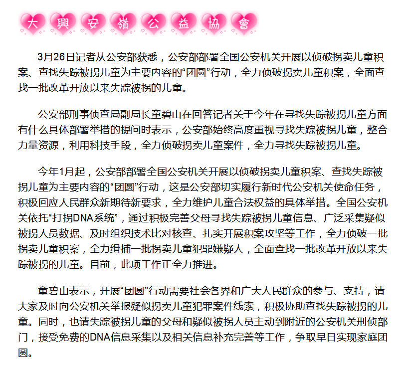 “团圆行动”全面查找失踪被拐儿童