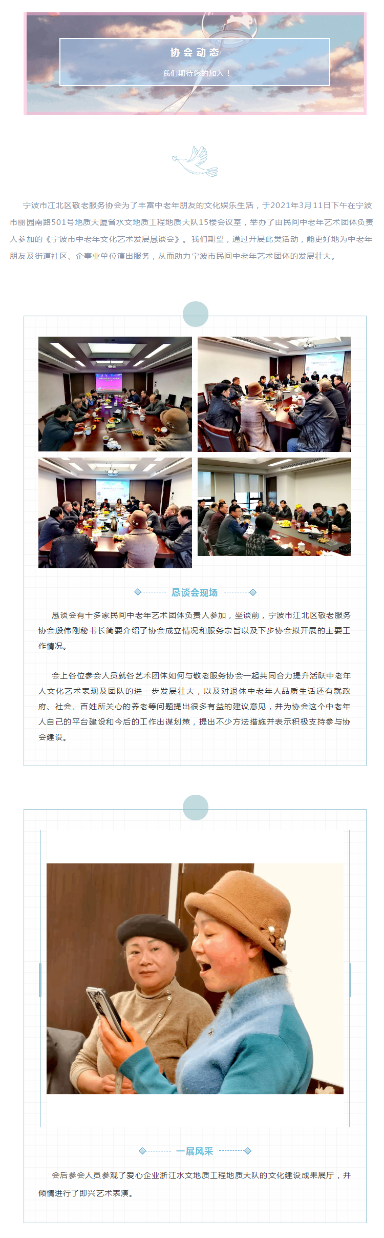 协会动态丨开展中老年文化艺术发展恳谈会,我们期待您的身影