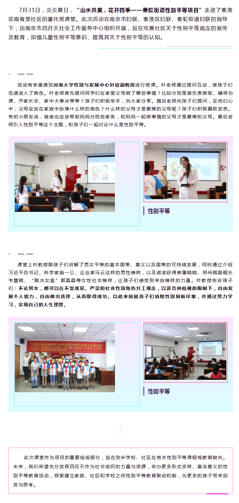 【秦虹·项目剪影】“山水共美,花开四季”——秦虹街道性别平等项目 走进扇骨里社区暑托班