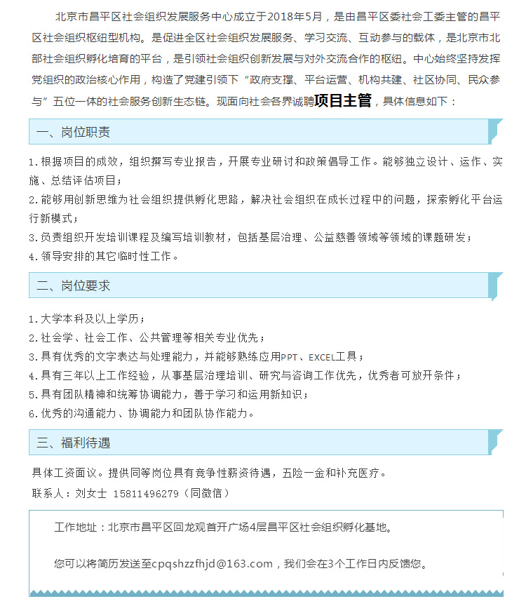 北京市昌平区社会组织发展服务中心项目主管招募公告