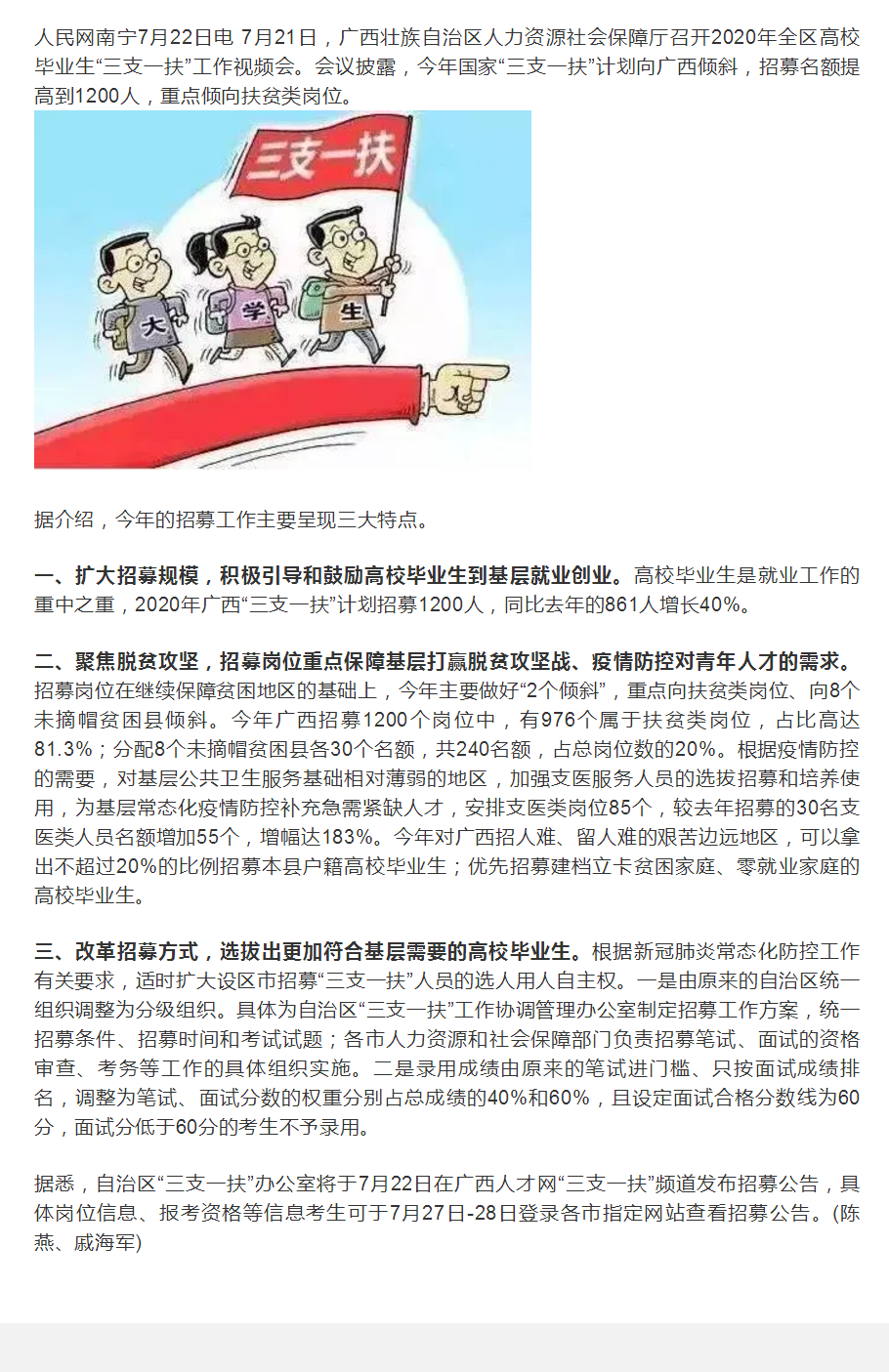 广西 “三支一扶”计划招募1200人 重点倾向扶贫类岗位