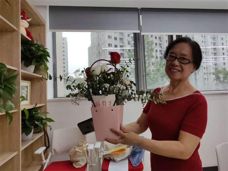 紧接着是居民们最期待的插花环节,社工边示范边讲解插花步骤。居民们兴趣盎然,纷纷沉浸在亲自创作的乐趣和插花艺术带来的快乐中,活动现场花香四溢,姹紫嫣红。