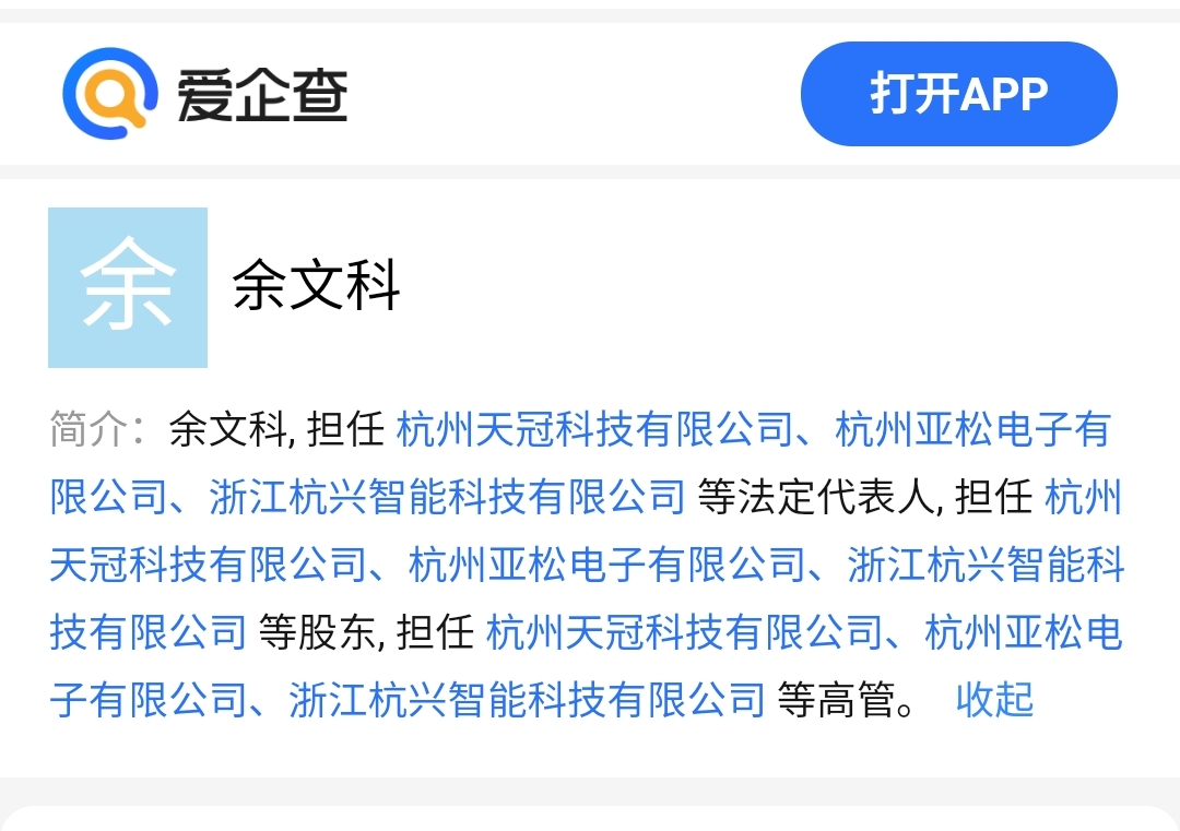 余文科先生是从赵集走出去的成功人农家子弟士,现为杭州天冠集团公司创始人兼董事长。杭州天冠集团成立于2007年,经过多年的持续创新和高速发展,集团建立起以杭州天冠科技有限公司、杭州亚松电子有限公司为中心,浙江鸿至电子有限公司、浙江杭兴智能科技有限公司、杭州天淘云信息技术有限公司为多点布局的战略规划,业务遍布国内600多个城市、国外50多个国家,是国内极富创造力的声光电技术建设者。该集团以智能预警为核心,利用云计算、大数据、人工智能、物联网、区块链等技术,为市政工程、工业生产、交通安全、产业设备、智慧安防、教育、水利、电力、农林业等各大领域提供安防报警产品与解决方案。