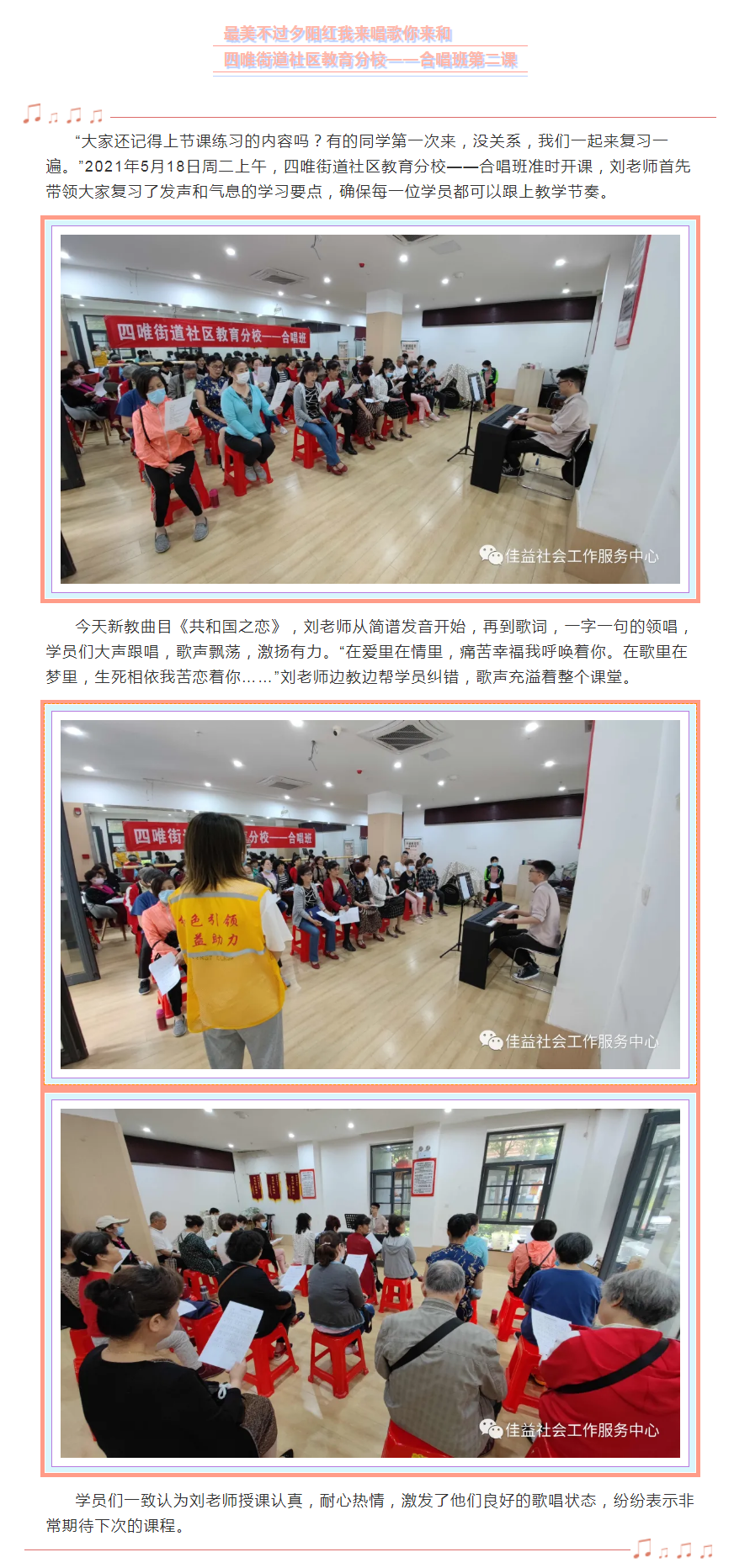 最美不过夕阳红我来唱歌你来和 四唯街道社区教育分校——合唱班第二课?