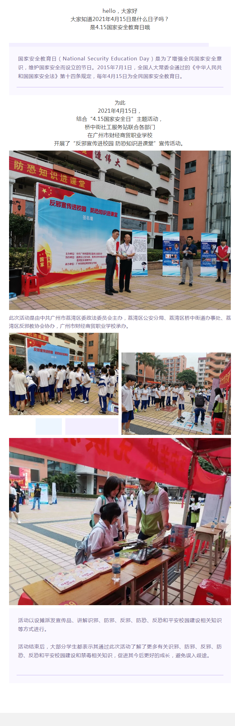 【桥中街社工服务站】“反邪宣传进校园 防恐知识进课堂”宣传活动