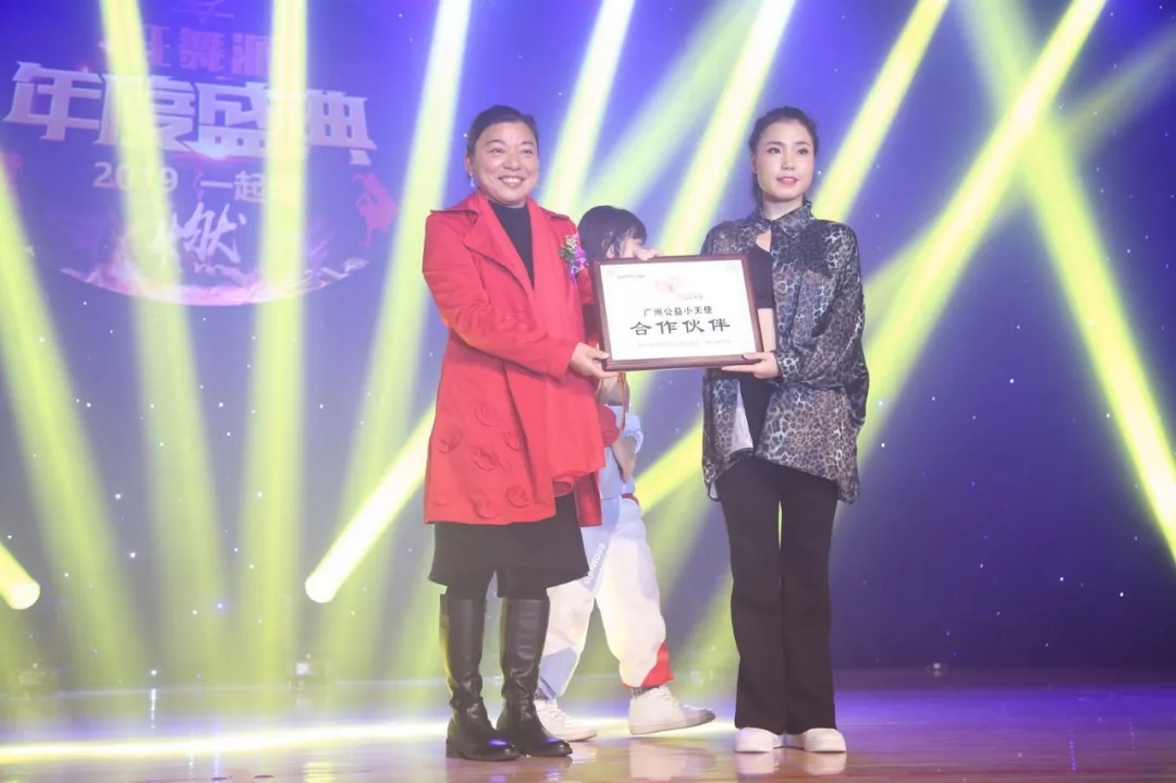 2019年1月10日,广州市天河区绿日同学公益服务促进会徐建华秘书长,受邀出席“2019一起燃!”狂舞派舞蹈学院年度盛典,举行广州公益小天使与狂舞派舞蹈学院合作授牌启动仪式。