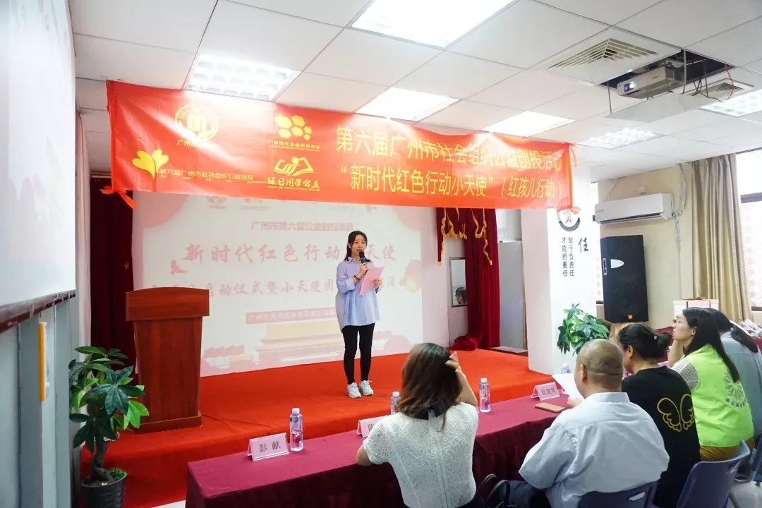 本活动是由广州市民政局资助、广州市社会组织联合会指导、广州市天河区绿日同学公益服务促进会发起的广州市第六届公益创投项目“新时代红色行动小天使(红孩儿行动)”之项目启动仪式暨小天使团培育选拔活动。