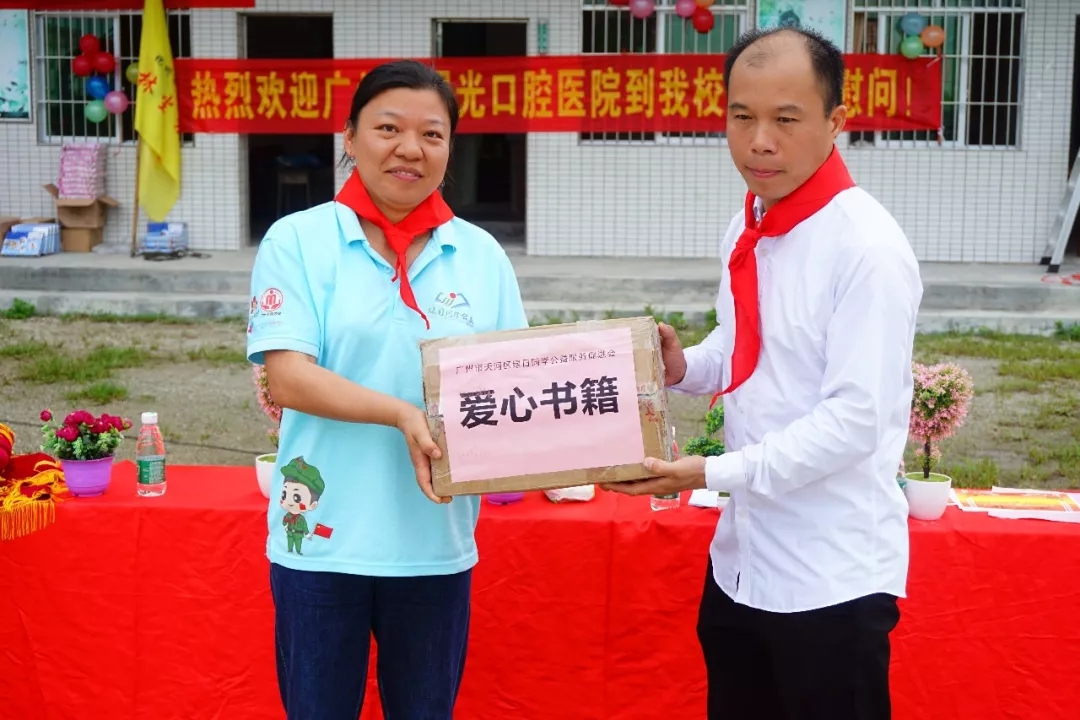 在欣赏完小朋友们的文艺汇演后,绿日同学公益徐建华副会长向学校捐赠爱心书籍和文具,校方回赠锦旗,以示感谢。