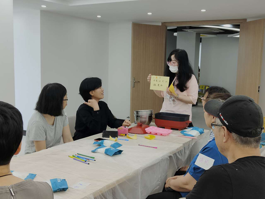 杨柳郡社区联合亲民社会工作服务中心一起为社区居民开展了“芬芳小满,制皂美好”手工皂DIY活动,让一块环保且有温度的手工皂,关爱你的日常洗护。活动伊始,亲民社工介绍了本次活动的主题和活动流程。随后,通过击鼓传“麦”的破冰游戏让在场的居民朋友们相互认识起来,并且通过游戏认识了小满及十二节气,分享了各自生活中小而美满的趣事,让现场气氛活跃了起来。破冰结束后,社工带领大家进入介绍手工皂的环节,将手工皂的制作工具和物料、制作步骤及注意事项做了一一讲解。得到居民良好的反馈后,社工指导参与者分组进行制作,两两配合将皂基融化成液体,分别放入植物油,香氛油,最后滴入色素,倒入膜具,最后把形态各异、精美绝伦的手工皂作品脱模包装,一块块芬芳美丽的手工皂就诞生在大家的手中。