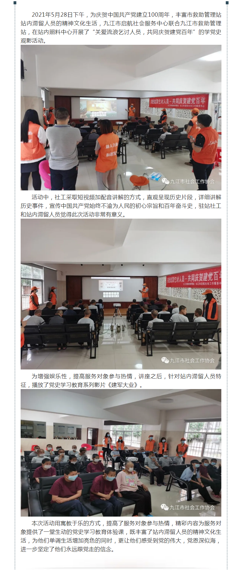 九江市启航社会工作服务中心开展关爱流浪乞讨人员活动