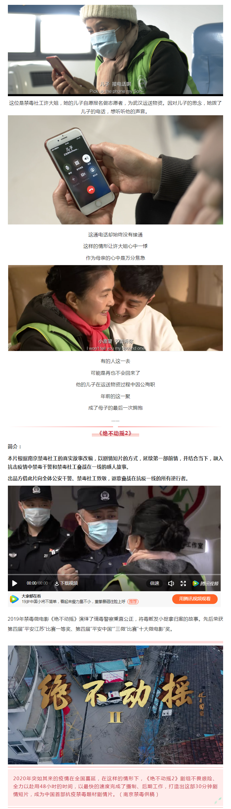 中国首部抗疫禁毒微电影《绝不动摇2》上线,致敬抗疫一线的公安干警和禁毒社工