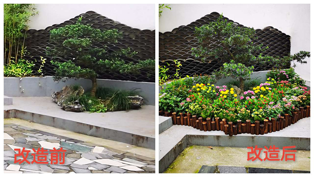 打造党建景观区时,大家在园艺爱好者居民的指导下,用五颜六色的鲜花装点了原本朴素的小花园,各种鲜花不仅带来了色彩,也让闲置的小花园焕发出别样生机。