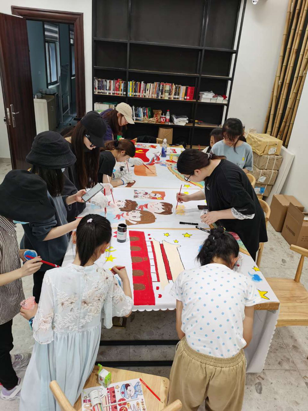 随后由社区居民、志愿者、亲子家庭齐心绘制的“建党百年”纪念画卷也一并装饰在了小花园内,凝聚了社区力量的绘卷在美化环境的同时,也会空间增添了更多的“红色”韵味,在社区里营造了浓郁的“红色文化”氛围,收获了许多的点赞和好评。