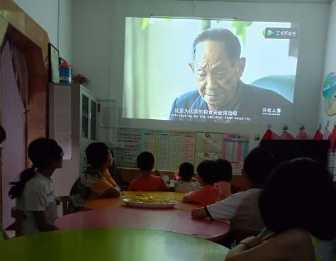 随后,大家一起观看《杂交水稻之父袁隆平纪录片》,让孩子们感受袁爷爷为世界解决饥饿和贫困问题做出的巨大贡献,了解袁爷爷传奇的一生,懂得今天的幸福生活是来之不易的。