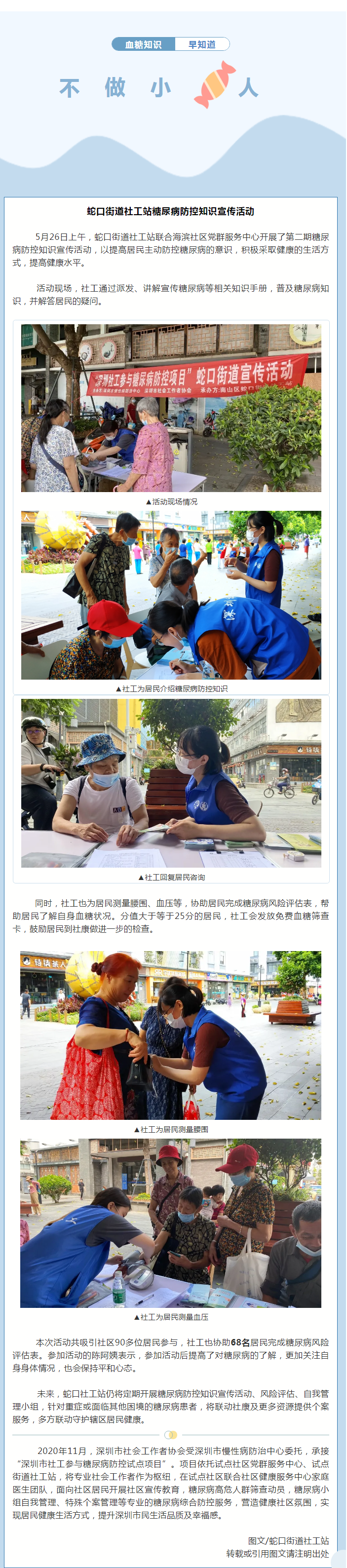 【街道社工站专题】血糖知识早知道,不做“小糖人”——糖尿病防控知识宣传活动