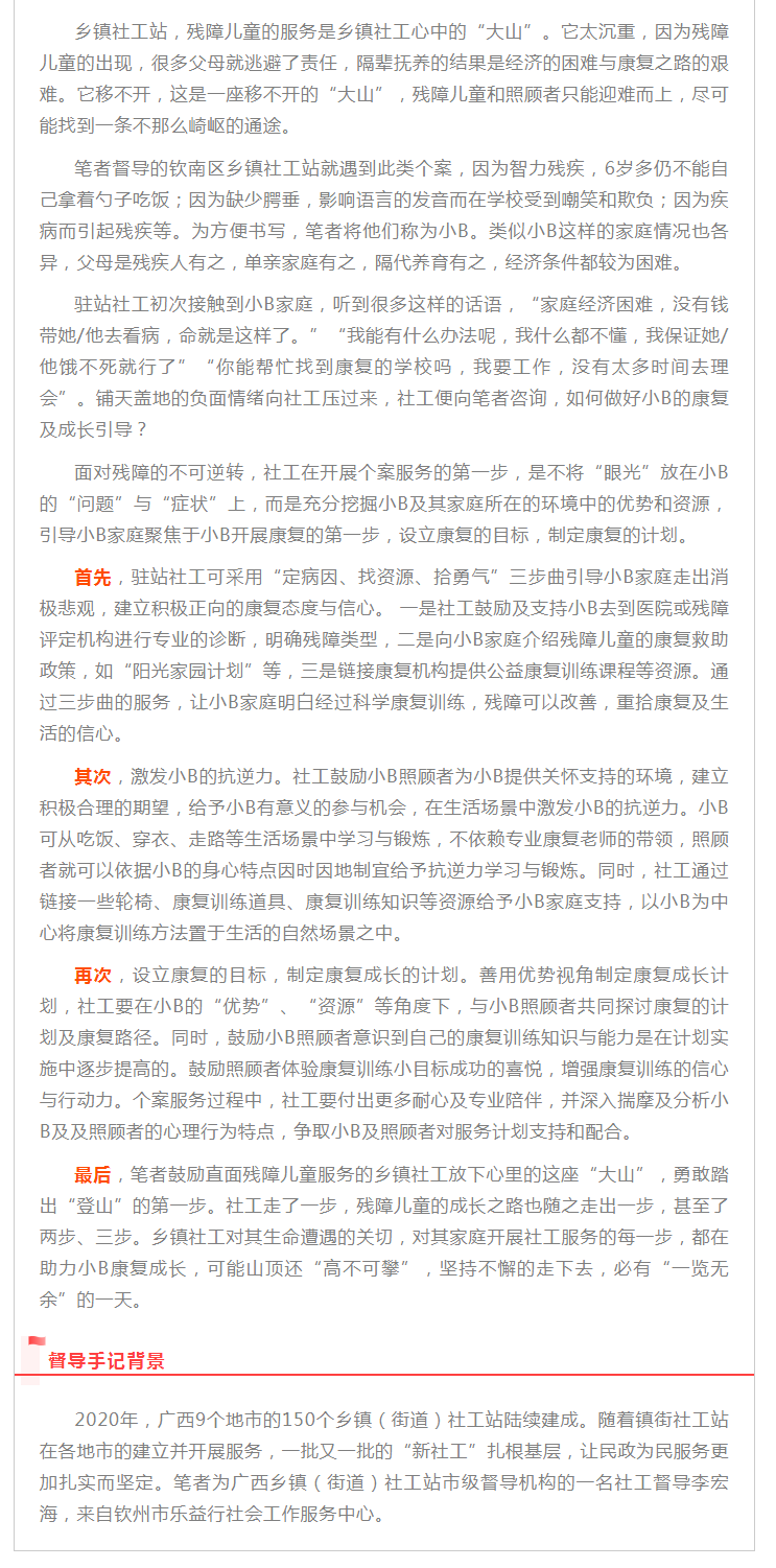 【督导手记】优势视角理论介入农村残障儿童的康复及成长引导