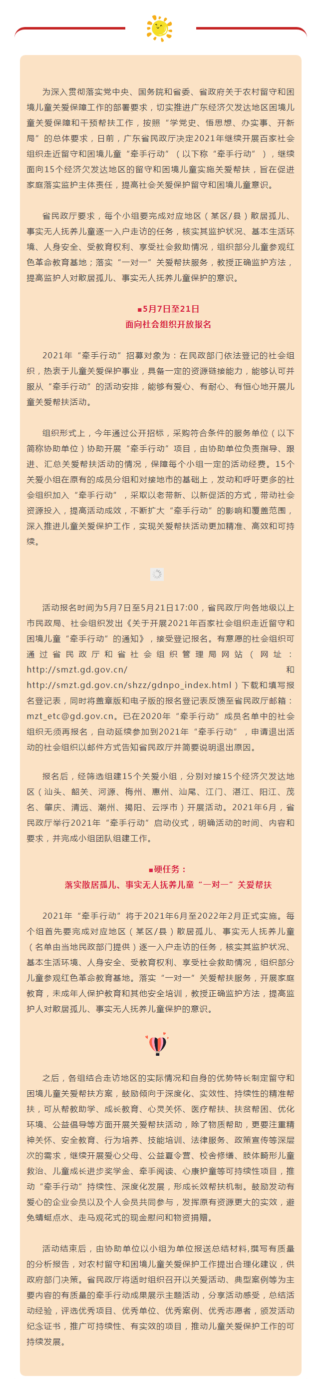 广东2021年百家社会组织走近留守和困境儿童“牵手行动”现起接受报名 ——落实散居孤儿、事实无人抚养儿童“一对一”关爱帮扶