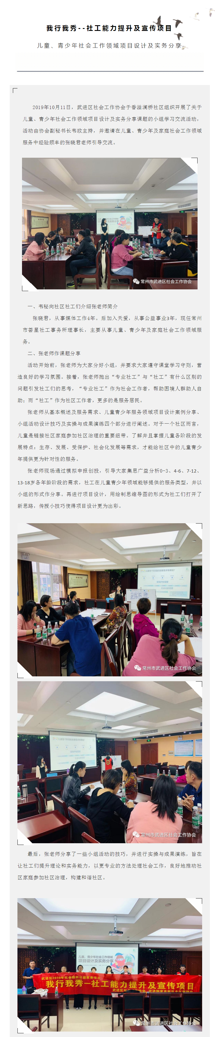 【我行我秀--社工能力提升及宣传项目】儿童、青少年社会工作领域项目设计及实务分享